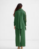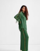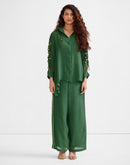 Shirt with tassels & metallic embellishments paired with a pallazo pant
