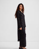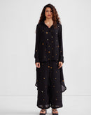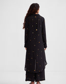 Waterfall shirt set embellished with metallic coins all over paired with a pallazo pant