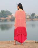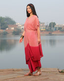 Half & half dyed (Mouse pink & Rani Pink) Shimmer twist kaftan paired with Asymmetric pant.