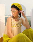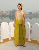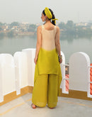Half & half dyed ( Champagne & Neon Yellow) Tunic paired with asymmetric pants.