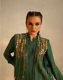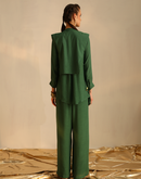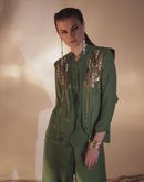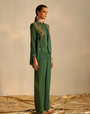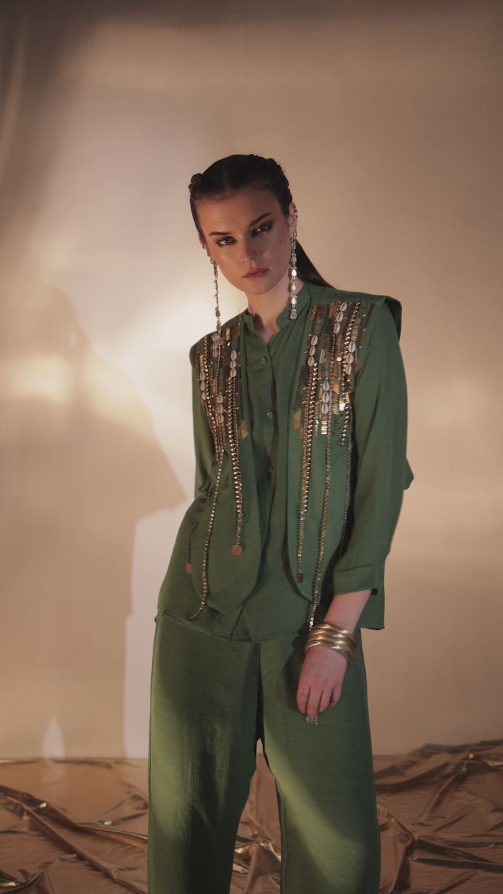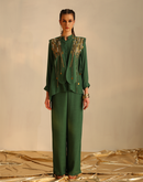 Heart shirt with a panel waistcoat embellished with golden metallic embroidery paired with a pallazo pant