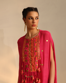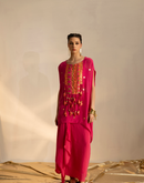Kimono with boho patch embellished with metallic embroidery and tassels paired with a draped skirt