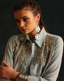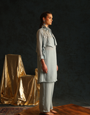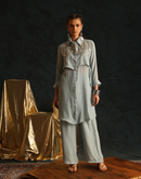 Long shirt with a high-low waistcoat embellished with silver metallic embroidery paired with a palazzo pant