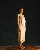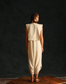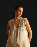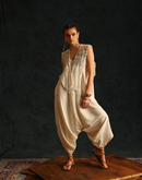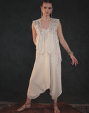 V-Jumpsuit with a panel waistcoat embellished with silver metallic embroidery
