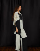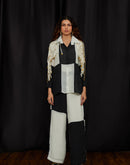 Black & White Panelled Shirt Embellished With Jhalar Metallic Embroidery Paired With a Pallazo Pant