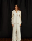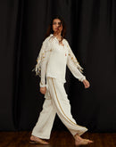 Chinese Collar Shirt With Tassels & Metallic Embellishments Paired With a Pallazo Pant