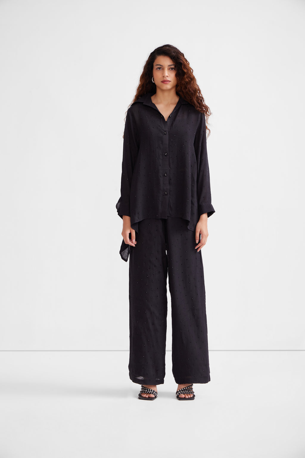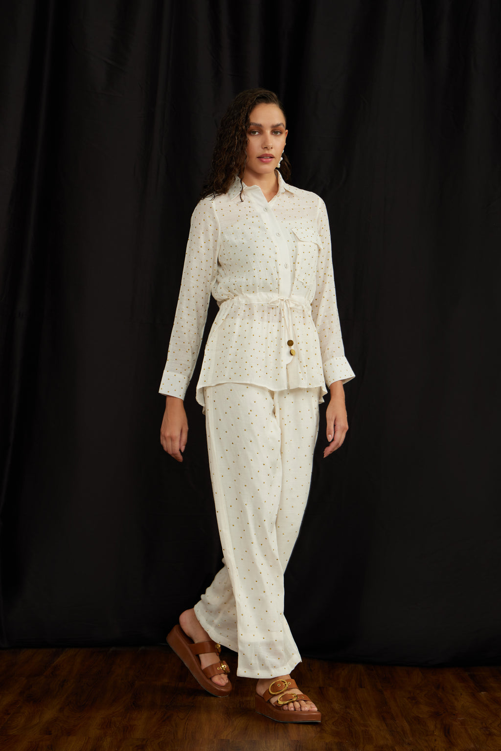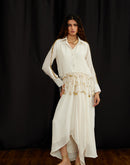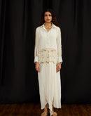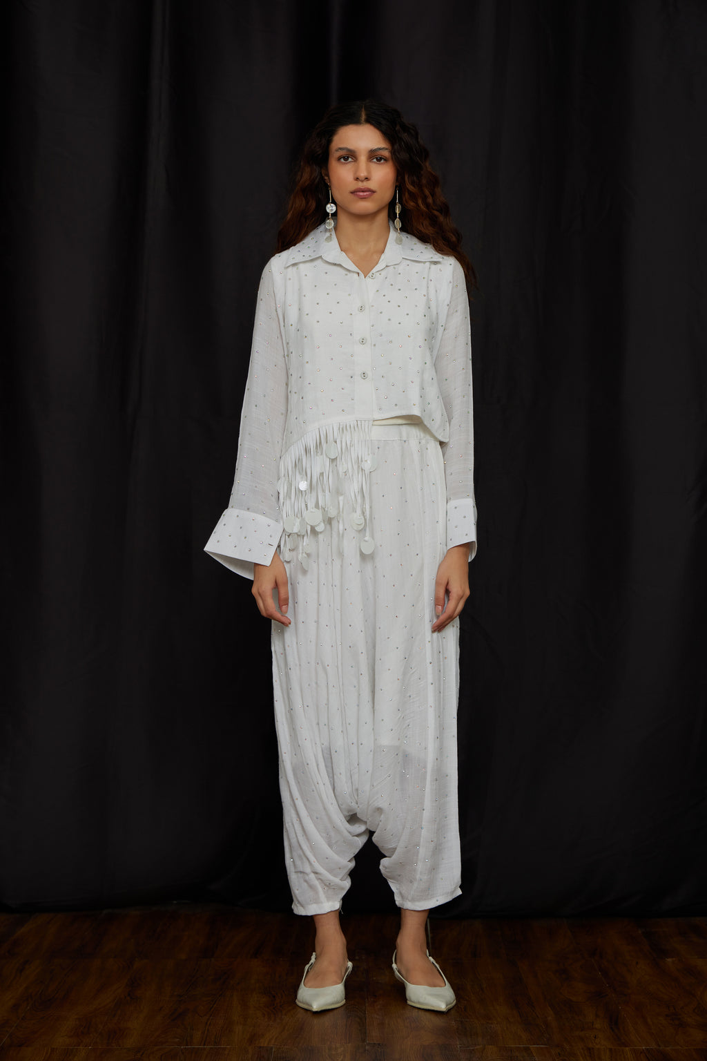 Crop Shirt With Tassels & Metallic Embellishments Paired With A Skirt