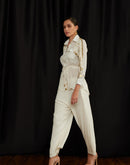 Drawstring Shirt Embellished With Tassels & Metallic Embellishments Paired With a Pallazo Pant