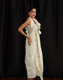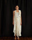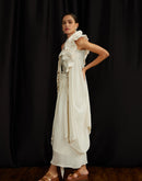 Frill jacket with tassels & metallic embellishments paired with a skirt