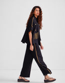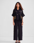Flared Shirt With Long Pocket Embellished With Metallic Coins & Chains Paired With a Pallazo Pant