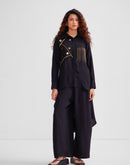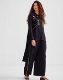 Waterfall shirt embellished with metallic coins & chains paired with a pallazo pant