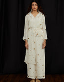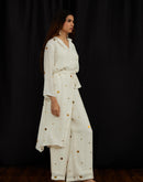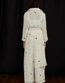 Long & short drawstring tunic set embellished with metallic coins all over paired with a pallazo pant