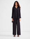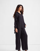 Shirt set embellished with black rhinestones paired with a pallazo pant