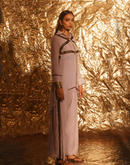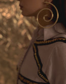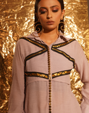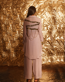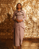 Jacket/Shirt embellished with gold mettalic work on both the front and back, Paired with Pallazo pants and a bralet.