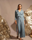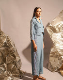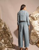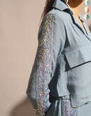 Crop shirt with long pockets paired with pallazo pants. The set is embellished with unicorn Sequins on both sides.