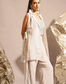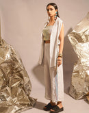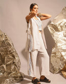 Sleevless blazer Paired with a unicorn sequins bralet and pallazos. Set is embellished with unicorn sequins on both sides.