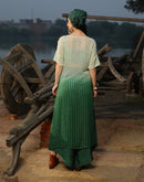 Bralet embellished with dense mirror and thread embroidery, paired with an asymmetric pants & ombre dyed shimmer kimono jacket.
