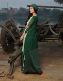 Tunic paired with drape skirt, Sea green front, and Dark green back. Neckline Embellished with mirror work detailing.