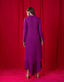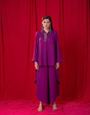 Cotton khadi shirt paired with asymmetric pants embellished with mirror and metal embroidery.