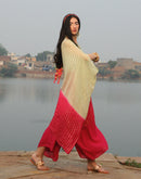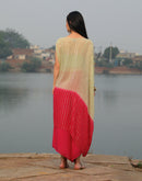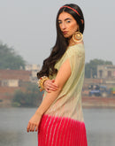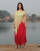 Half & half dyed (Sea green & Rani Pink) Shimmer knot kaftan paired with Asymmetric pant.