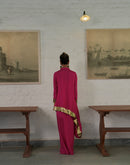 Asymmetric kali tunic paired with a Drape Skirt . The Tunic is embellished with silver and gold ornaments and antique gota on the border.